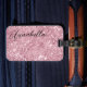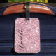 Den här glamorösa och gigantiska anpassningsbarna bagagetaggen har en glatt tittar, faux rosa glitter bakgrund. Ett exempel på namn skrivs ut över den lämnat sidan i ett typsnitt av eleganten. Du kan anpassa bagagetaggen så att den innehåller ditt eget namn eller egen text.