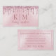 Det här affärskortet för snyggt har en glamorös, gigantisk och färgad för rosa med en folie i struktur. Ljusa rosa glitter-sekviner droppar över den översta delen. Monogram initialer placeras under glitter, följt av ett exempel på namn som skrivs ut i ett typsnitt av eleganten. Baksidan av affärskortet har en bakgrund med en mjuk rosa glitter ram.