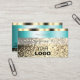 Glamous Teal Guld Sparkling Glitter med Logotyp Visitkort