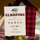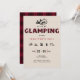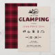 En enkel, modern, elegant- och chic-inbjudningsmall för 30års födelsedag helg med ett camping-/glamptema, med röd plaid på titeln "camping" och rhinestoner (detta är en digital effekt, inte verkliga rinestoner), handdragna campingikoner och utomhusikoner (brandläger, marshmallow, tält, lampa osv.) med ett modernt, plågat struktur. Ett underbart val för en stor födelsedag helg av roligt camping, vandring eller var som helst utomhus med flickorna, med familj osv.