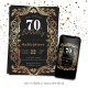 Glamustig 70:e födelsedag Guld Black Boho Elegant Inbjudningar