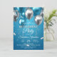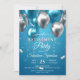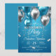 Glänsande blå och silverballonger pensionsfest inbjudningar