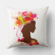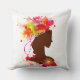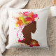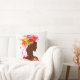 Kastkudde med en glänsande blommig kvinnlig silhuettillustration på en genomskinlig bakgrund (vit används i provet) eller anpassad bakgrundsfärg