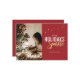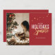 Må din semester glänsa julkort med falskt glitter skript typ och halv sidas foto. Röd bakgrund med glitterstjärnor.