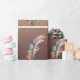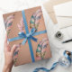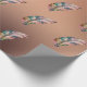 Glänsande kopparfärgat papper Rosa och gröna fjädr Presentpapper