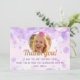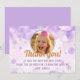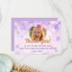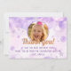 Uttryck tacksamhet efter en magisk födelsedagsfirande med detta tackkort! Det har ett vackert personligt foto av ditt barn, omgivet av drömlika lila akvarellbubblor och glittrande silverstjärnor. Denna fantasifulla design är perfekt för en flickas födelsedagsfest och får gästerna att känna sig uppskattade för sin närvaro och sina gåvor. Anpassa enkelt med ditt eget foto och meddelande för att skapa en minnesvärd souvenir. Ett verkligt speciellt sätt att säga "tack" för den bästa födelsedagen någonsin!