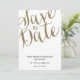 Formell, trendig och chic, denna spara datum kallelse kort har fet text med glitterimitation och en plats för ditt foto på baksidan av kortet.