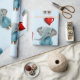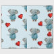 Glansigt presentpapper Blå elefant röda hjärtan