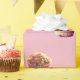 Glansigt slående in papper för läcker muffins. Rosa bakgrund. Skräddarsy din bakgrundsfärg.