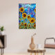 Den här fantastiska nedfläckaden av glas har en fält av solblommor mot ett blå himmel.