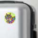 Den här unika och färgstarka katten sitter mot en bakgrund i grönten vår och blickar vid betraktaren och visar på sina mosaikliknande markeringar med flera färgader som liknar nedfläckad glas. Hela scenen omges av ett detaljerat flerfärgat gräns som matchar hennes markeringar.