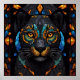 Stor svart katt Mosaic nedfläckad Glass, effekt Cushion. Ögon med färgstark Orange inställt på en bakgrund av glas med svart nedfläckad med färger och gröntar. Poster