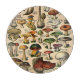 Stilren rund glasskärbräda med vintageillustrationer av diverse svampar. Anpassa med egen text. Gör en fin presentidé.
