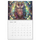Den vackra uggla-kalendern av glas av nedfläckad har 12 månaders fantastisk grafik med vackra ugglor med glasfönsterinställningar av nedfläckad av vintage. Färgfulla, klassiska illustrationer av vintagen. Kalendern kan anpassas så att den startar vilken månad som helst av året. Gör en perfekt till uggla älskare.