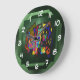 Vill du vrida tillbaka klockan till en annan gång? Här är en klocka som hjälper dig med det. Numren ställs in bakåt. Ni kanske inte kan vrida tillbaka händer på tiden, men den här klockan gör oss tänka vi kan. Enastående abstrakt design i djup grönt med ett glas med flera färgader. Strängande jazzistisk design, som konstnären kallade "Målat glas". Det passar bra in i en mängd olika typer av dekoration.
