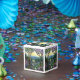 Den här återgivningsbilden av en nedfläckad glasberg och Stream-bild är representativ för Art nouveau-eran och har rik färg av blått, lila, violett och grönt. Det ursprungliga blyhaltiga glas av nedfläckad var designat av Louis Comfort Tiffany och tillverkat av Tiffany Studios. Den här bilden är offentlig. Det här är ett vackert sätt att presentera dina bröllopsfavörer eller små gåvor.