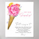 Denna glassematade möhippa dekoreras med vattenfärgade blommigtar och en glasskon. I texten står det: "Hon har blivit uppläxad!" i snyggtens rosa, manusskrivstil. Glass med vattenfärg, med blommor och frukter.