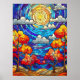Inverkan på fastsatt glas, illustration av stormmoln och träd under hösten. Det är en originalmålning med färgstarka moln och träd och ser ut som en slinga. Kan köpas som en fysisk poster eller digital poster som laddas ned med hög upplösning om du vill skriva ut på egen hand.