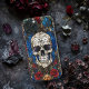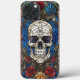 Gothic Skull Stached Glass Window Design iPhone 13 Pro Max Fodral. © Mörk Heart Desires. En gotisk nedfläckad glasruta av skallglas stil är på telefonfodralet.