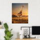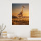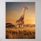En majestätisk glasper giraff står hög över den öppna savannen, tillverkad av genomskinlig kristall med subtilt bärnstensfärgad nyans, polerade konturer och graciösa inre reflektioner. Långa eleganta ben, detaljerade ossikoner och ett lugnt uttryck skapar en raffinerad modern skulpturkänsla. Gyllene gräs, akacieträd, avlägsna kullar och varmt morgonljus omger scenen med en stillsam afrikansk skönhet. Perfekt för safariinspirerade interiörer, barnrum, moderna hem, vilda djur-älskare och statement-väggar som söker sofistikerad djurkonst.