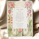 Inbjudan dina gäster med den Art nouveau-inspirerade bröllopssviten. I designen visas stiliserade blommigtar på ett vackert sätt, med framträdande, mjukt återgiven ro i skuggor av rosa och med en karakteristisk geometrisk vridning vid deras centrum. Dessa kompletteras på ett lämpligt sätt av ömtåliga tulipliknande blomningar i rosan och charmerande kluster av mindre rosa och korallblommor med gulter, som alla är kopplade till blomstrande gröntar. Inbjudans framsida anger dina bröllop-detaljer i det här konstnärliga ram, där subtilt Art nouveau-geometriskt inslag, som mjuka bågar och linjära detaljer, bildar en sofistikerad bakgrund. Den omvända sidan, som är avsedd för "The Finer Details" (Finer-detaljer), fortsätter med den här fantastiska blommigten och det geometriska motivet, vilket garanterar en sammanhängande och snyggt presentation. Hela sviten återges i en känslig vattenfärgsteknik, vilket ger en mjuk, romantisk och konstnärlig känsla. Denna inbjudan är perfekt för par att söka ett unikt, vintage-inspirerat eller konsttemat bröllop, som frammanar 1900-talets tidlösa charm från tidigt.