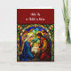 Ett vackert nativitetscen med den välsignade Jungfru Mary och St. Joseph som knullar av Jesus när han sover i en chef i ett nedfläckad glas stil. Ett julkort som din familj och dina vänner kommer att minnas.