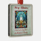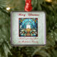 En ljusstark och pulserande glasform av en bukett av julhorn och bär som omger ett ljus, i ett rött ram. Med blek grönt faux glitter bakgrund och "God jul". Du kan ändra anpassadet hälsning vid grund i designen till ditt eget meddelande.