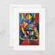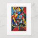 Ett varmt och dynamiskt vykort för kaffe älskare och konstentusiaster. Den här nedfläckad-glasinspirerade designen har fet geometrisk linjer och flytande kurvor, där varje sektion är målad i rik av rött, guld, grönt, blått, ljusblått, orange och brunt. Slumpmässiga vita stänkar tillför en vindruvscharm, skapar den mysigt och bjuder in. Perfekt för att skicka till vänner eller lägga till i samlingen.