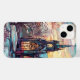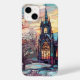 En charmerande iPhone 14 knappt där fodral med en bild av en vinterkyrka i nedfläckad Glass stil.