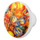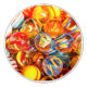 En färglös kollage av glaspärlor. I färg av rött, blått, gult