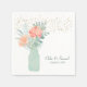 En vit blåfärgad grönt som frodats på bildmässan burk innehåller pastellblommor och orangar med mjuk grånyj på framsidan av den söt pappra napkin från bröllop. En bakgrund av guld konetti-bristerna ökar intresset och kontrasten för de ömtåliga blommorna. Din anpassningsbar står i mörkare teal. Se till att se matchande bröllopsinbjudningar och andra bröllop-produkter i vår butik. *Den här designen användor teckningar från LABFcreations på Etsy.