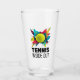 Add a splash of creativity to your everyday routine with this stylish glass cup featuring a vibrant abstract design and the words “Tennis Inside Out.”