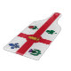 The cutting board prominently displays the flag of Montreal, with its bold red cross dividing a white field into four quarters. Each quadrant highlights a floral emblem representing the city’s founding communities: the blue fleur-de-lis for the French, the red rose for the English, the purple thistle for the Scots, and the green shamrock for the Irish. At the center rests a vibrant red maple leaf, symbolizing Canadian unity. This detailed and meaningful design brings cultural pride and historical depth to your culinary space.