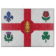 The flag of Montreal is prominently displayed in high resolution across the board’s surface. Its white field is divided by a red cross, with each quadrant featuring a traditional emblem that represents a founding group of the city: a blue fleur-de-lis for the French, a red rose for the English, a purple thistle for the Scots, and a green shamrock for the Irish. In the center, the red maple leaf signifies unity under the broader Canadian identity. The bold symbolism and clean layout of the flag are perfectly suited to the sleek, polished texture of tempered glass.