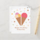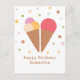 Ett lyckligt födelsedags-kort med 2 glasskoner och prickmönster för älskare av frysta godsaker. Du kan ändra meddelandet för att använda det för en bröllopsfest, som ett vykort, etc.
