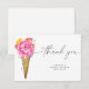 Denna glassematade möhippa dekoreras med vattenfärgade blommigtar och en glasskon. I texten står det: "Hon har blivit uppläxad!" i snyggtens rosa, manusskrivstil.