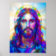 Glaskonst av Jesus Kristus med söt påskhare och pulserande påskägg. Utplåna kanindjur för att återuppväcka den kristna religionen. Glad påsk med den här coolan Jesus Porträtt.