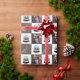 Glass Snowball Winter Village Snowy House Brown Jul Photo Wrapping Papper. Mejerisagor på vintern med snö. Fläckvitt bladprydnadsämne på en brun bakgrund.