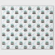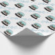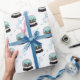 Glass Snowball Winter Village Snowy House Jul Wrapping Papper. Mejerisagor på vintern med snö och vackert snöflingor. Blå klätterväxter - bladdekorationer på vit bakgrund.