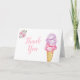 Använd detta roliga tackkort med glass tema för att tacka gästerna som deltog i er bröllopsfest eller brudfest. Vattenfärg illustration av rosa och lila glass i en våffelkägla med rosa blommor i hörnet.