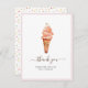 Sött glassbröllopsfest platt tackkort med brudens namn och tackmeddelande på baksidan med vattenfärg-illustration av glasskon med förlovningsring på toppen. Du kan ta bort meddelandet och inkludera ditt eget meddelande eller ta bort.