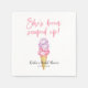 Whimsisk glass-tema bröllopsfirande pappersservett med akvarellillustration av rosa och lila glasskulor på en våffelkägla. Texten säger "hon har blivit scoopad!" Perfekt för en sommarbröllopsfest eller brudshower.