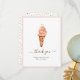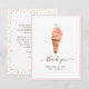 Sött glassbröllopspresent platt tackkort med brudens namn och tackmeddelande på baksidan med akvarellillustration av glasskon med förlovningsring på toppen. Du kan ta bort meddelandet och inkludera ditt eget meddelande eller ta bort.