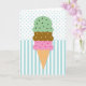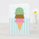 Denna design presenterar en trippel kammar hem glasskotten (jordgubbe, chip för chokladvitchoklad och mintchokladchip) på ett ljust - blåttpolkaen pricker och randig bakgrund. Skräddarsy detta kort för partyinbjudningar, notera kort, eller något skulle du något liknande!