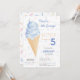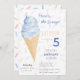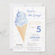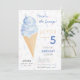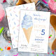 Gör ditt barns födelsedag oförglömlig med denna moderna sommarinbjudan till glassfest. Designen har en akvarellblå glasskon med guldglitter, på en färgglad bakgrund med sprinkles som gör den både stilren och charmig, medan frasen "Här är scoopet?" tillför ett lekfullt element till kortet. Använd designverktygen för att anpassa texten, teckensnittet och färgerna! Finns även som nedladdning.