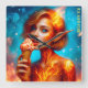 En vacker elf-flicka äter kräm i en våffel kopp, mycket ljusa och färgstarka nyanser i ett fantastiskt stil. (SNÄLLA! - Se även andra nya samlingar för fler val)