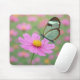 A delicate glasswing butterfly with transparent wings gently settles on a vibrant pink cosmos flower, creating a dreamlike scene enhanced by a soft focus background