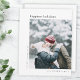 Ett platta gratulationskort för foto i snyggt med klassisk typografi "lyckligaste helgdagar" i svart på en ren, vit bakgrund. Fotot och texten kan enkelt anpassas för personligt bruk. En enkel, minimalistisk och contemporary julklapp som utmärker den här julhelgen! Bilden som visas är endast avsedd som illustration för att ersättas med ett eget foto. Platshållarbilden består av ett ungt par huggande från lycklig och ge varandra en eskimo kyss med en vintersnöbakgrund.