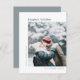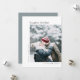 Ett platta gratulationskort för foto i snyggt med klassisk typografi "lyckligaste helgdagar" i svart på en ren, vit bakgrund och en mjuk, blå grått-funktion färg på motsatt sida. Fotot och texten kan enkelt anpassas för personligt bruk. En enkel, minimalistisk och contemporary julklapp som utmärker den här julhelgen! Bilden som visas är endast avsedd som illustration för att ersättas med ett eget foto. Platshållarbilden består av ett ungt par huggande från lycklig och ge varandra en eskimo kyss med en vintersnöbakgrund.