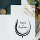 Vin glastypografi par Namn Bröllop gummi frimärke. Skapa ditt eget e-postmedföljande eller stationär frimärke. Formgivningen har brud och groom namn i trendig-typografi och bröllop-datum inuti en abstrakt av ett vin-glas. Anpassa med dina data.